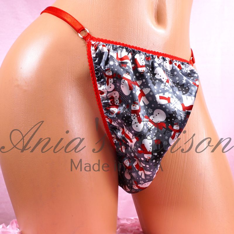 SALE Christmas Satin Sissy Panties - COUNTESS CUT polyester Shiny wetlook cheeky Little Christmas Ponies string bikini panties for Men knickers Second Skin