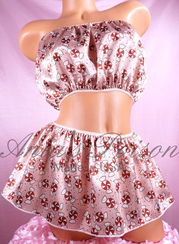 Christmas Lace Duchess sissy panties Wreath and Christmas spirit pink print, satin crotch Classic 80's cut satin wet look WOMEN'S panties sz 5-9